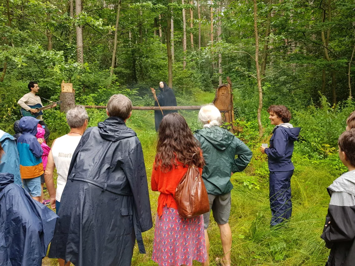 Après une demi-heure de pédalage, le Daweid est atteint. Tout le monde pose son vélo et se réjouit de découvrir notre lutte. Les enfants sont emmenés dans un coin pour peindre des pierres. Nous exposons la situation écologique actuelle, puis le projet sinistre de notre CCRG et enfin, nous laisser la parole afin que chacun puisse proposer des alternatives. Des dizaines d’idées pour profiter intelligemment de ces 27 ha ont ainsi été proposées. Nous avons également obtenu de nombreuses pistes pour déboulonner la mécanique insensée de nos élus. Merci à tous les altertourien.nes !